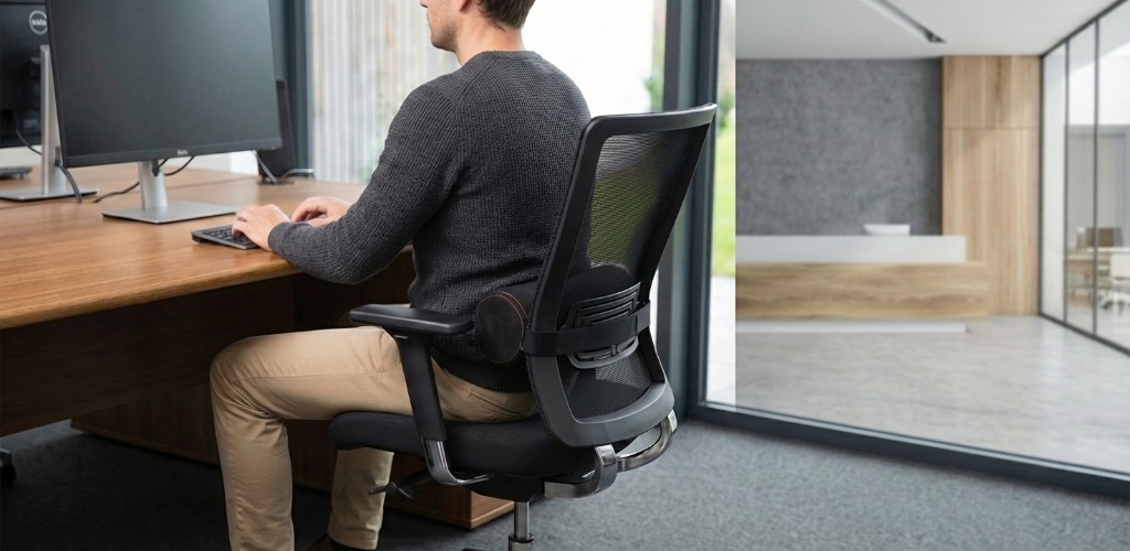 Outro ponto importante é perceber que a postura não se limita ao momento de trabalho. A forma como dirigimos, usamos o celular, assistimos televisão e até dormimos influencia diretamente a saúde da coluna. Pequenos ajustes nesses momentos, quando feitos de forma consciente e constante, podem trazer benefícios significativos ao longo do tempo. Recursos ergonômicos, como o uso de um suporte de apoio lombar, podem ser grandes aliados nesse processo. Eles ajudam a manter o alinhamento da coluna durante o tempo em que ficamos sentados, oferecendo suporte e conforto. Embora não substituam o movimento nem a orientação de um profissional de saúde, esses recursos facilitam a manutenção de uma postura mais adequada no dia a dia.